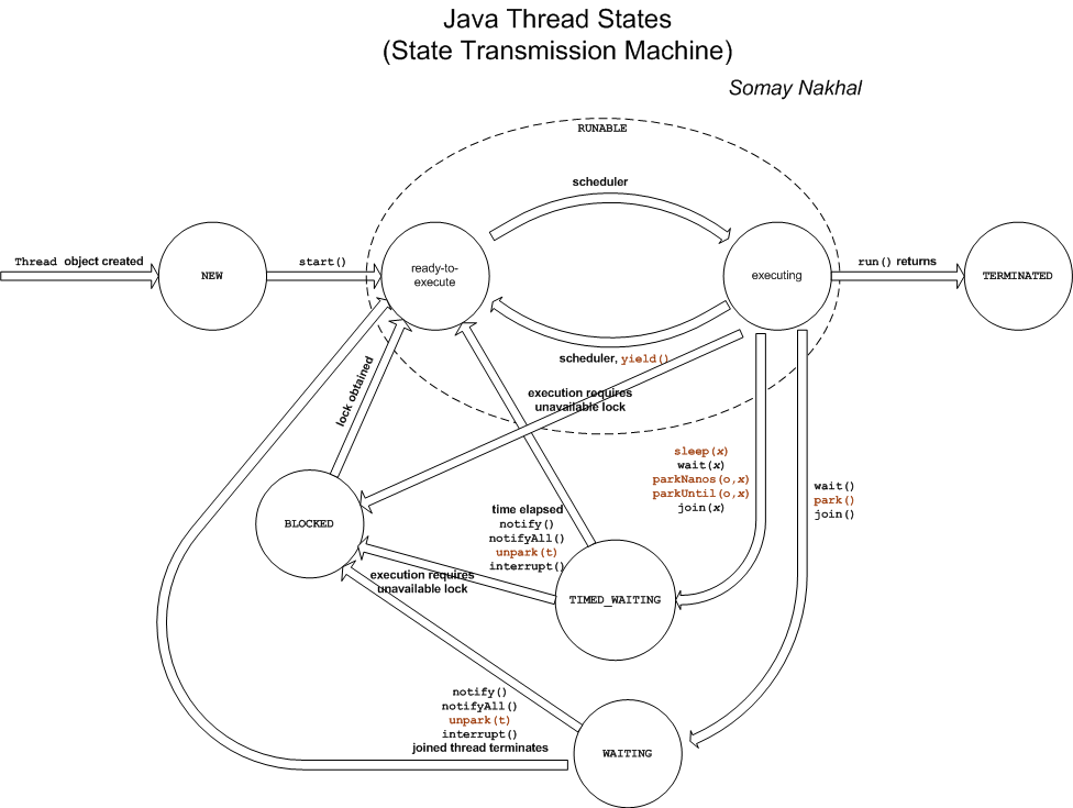 waitmethod suspend the current thread. When a thread invokes wait, it must own the object's intrinsic lock, that is why calls to wait are usually wrapped in a synchronized method or statement. The invocation of the wait method suspends the thread execution and releases the lock.At some point, another thread will acquire the object's intrinsic lock and invoke